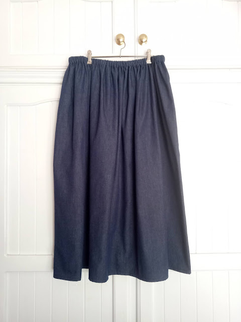 Today, I was able to sew two skirts out of a piece of light weight denim that I found I had.